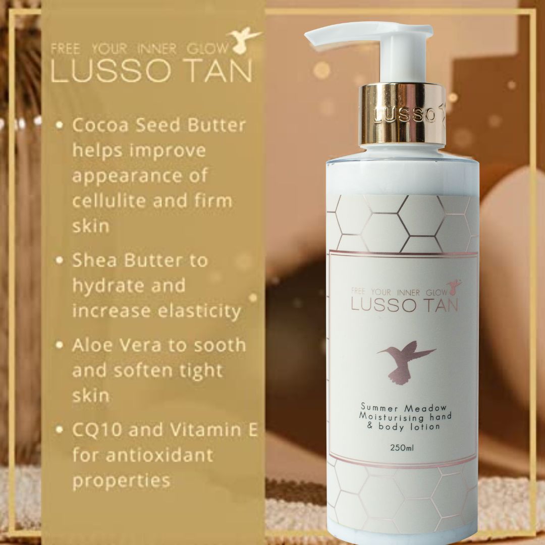 Achieve smooth, velvety soft skin and prolong the life of a sunless tan with Lusso Tan Summer Meadow Moisturising Body Lotion; a luxuriously scented formula infused with the smell of fresh summer meadows.